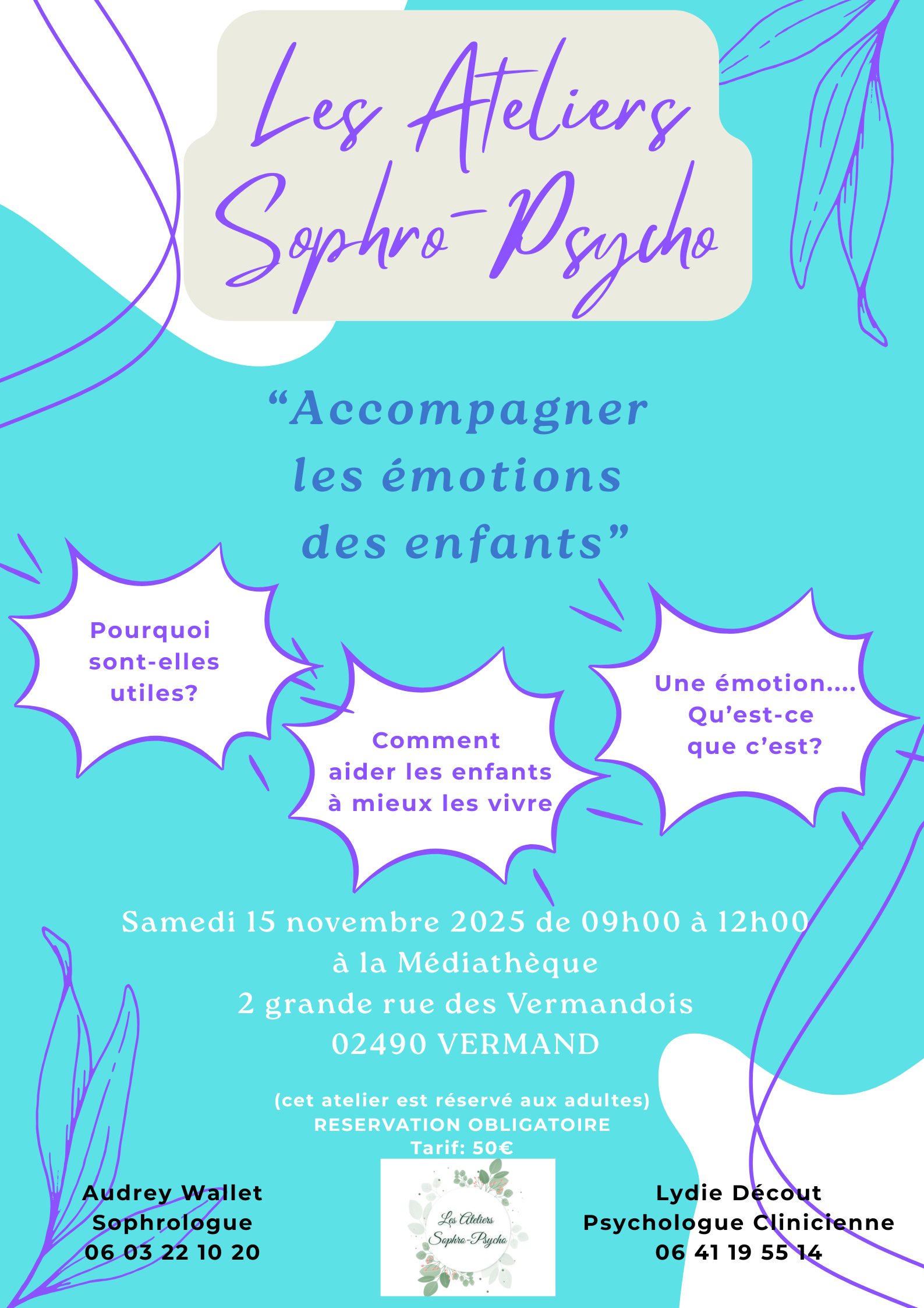 Le samedi 15 novembre 2025, de 9h à 12h, la médiathèque de Vermand accueillera un atelier inédit, animé par Audrey Wallet, sophrologue expérimentée, et Lydie Décout, psychologue clinicienne. Cette matinée est dédiée aux adultes désireux d’accompagner sereinement les enfants dans la découverte et la gestion de leurs émotions.